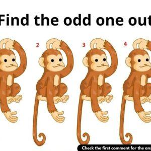 In this fun optical puzzle, we’ve got four adorable monkeys, but one of them is hiding something different! Can you spot the odd one out? The key…