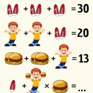 This tricky puzzle isn’t as easy as it seems! With just a few simple steps, you’ll need to decode the math behind shoes, burgers, and a boy…