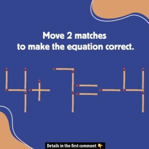 Here’s a tricky matchstick puzzle to test your problem-solving skills! The equation 4 + 7 = 4 may seem impossible to solve at first, but with a…