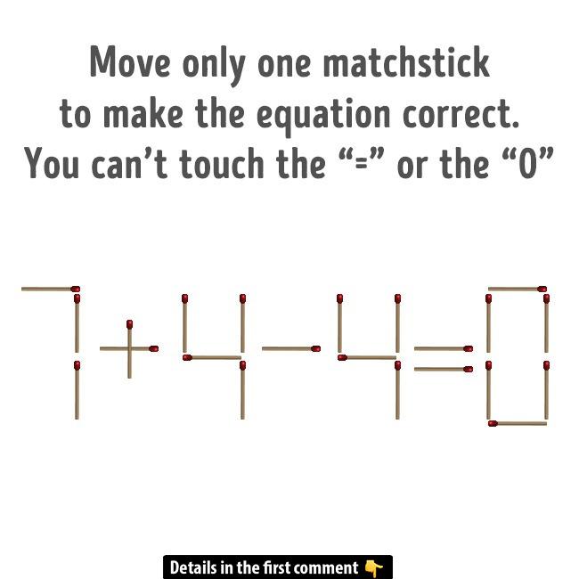 Move Just One Matchstick to Make the Equation Correct (Don’t Touch the “=” or “0”)