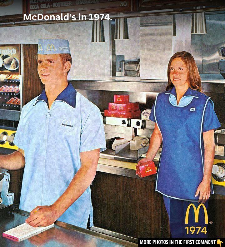 McDonald's team members in the early 1970s, proudly serving customers with smiles and efficiency.