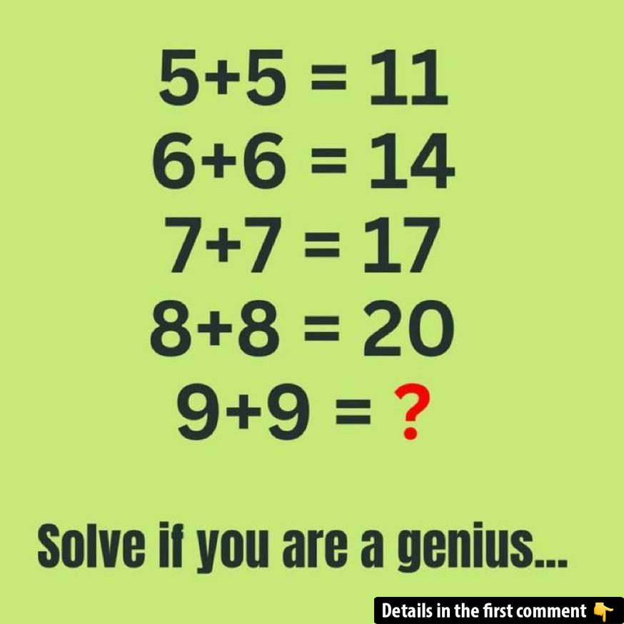 Think you’re a math genius? Here’s a puzzle that will challenge your logical thinking! The sequence might look like basic math at first, but there’s more to it. While it seems simple to add the numbers, there’s a hidden twist that most people miss. Can you figure it out? Read through the explanation and solve the mystery behind these seemingly simple equations. Ready to test your skills? Check out the answer, learn the trick, and share it with your friends for a fun challenge!