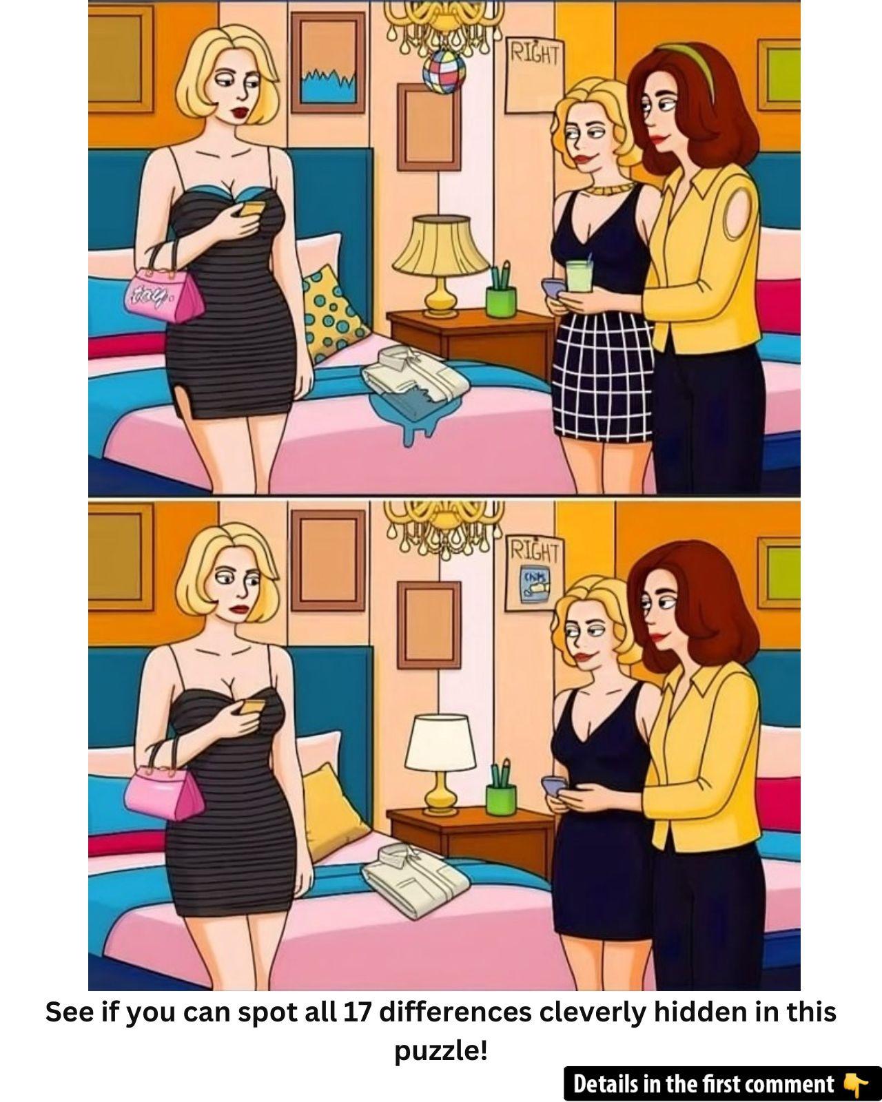 Ready to put your eyes to the ultimate test? In this vibrant party scene, two nearly identical images hide 17 clever edits—from missing jewelry to swapped décor, and even a changed chandelier pattern. Most people overlook small tweaks when they rush or focus on faces alone. But by dividing the scene into left, center, and right zones, and scanning methodically, you’ll catch every subtle swap. In our full breakdown, we guide you through the common pitfalls, a step‑by‑step detection strategy, and reveal all 17 differences. Dive in, challenge yourself, and share your count and method in the comments!